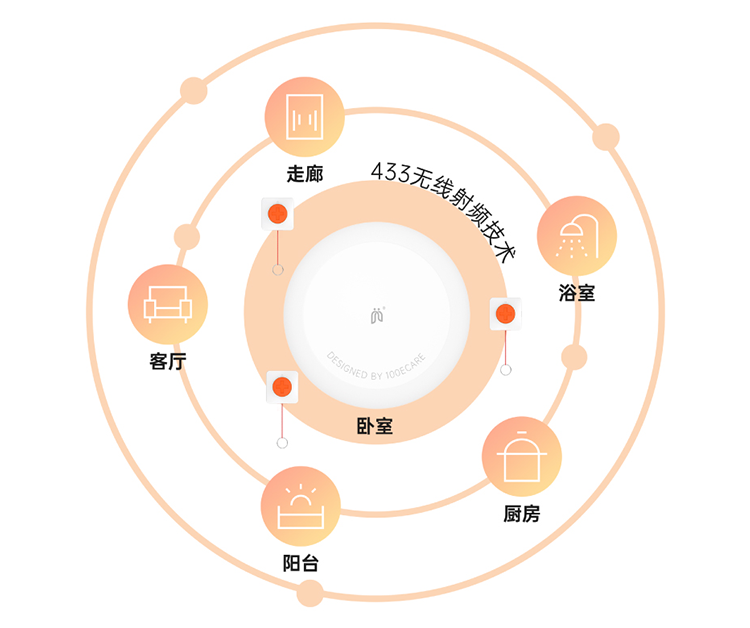● 多点位呼救:生命体征/睡眠监测雷达支持AI语音识别呼救,并能联动多个433按钮满足多场景紧急呼叫需求。