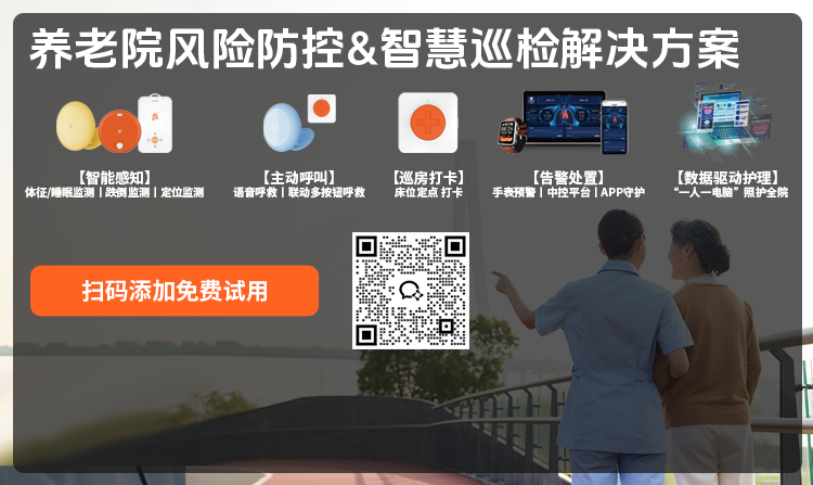 聚焦“智能感知+主动呼叫+告警处置+数据驱动护理”,针对养老院全天(尤其夜间)护理“盲区”——监护无法全方位覆盖、救援响应滞后等,打造从无感生命体征监测、体征(心率、呼吸率等)或体动(长时卧床、离床、跌倒等)异常主动告警,到实时精准干预的全流程守护模式,形成服务闭环。